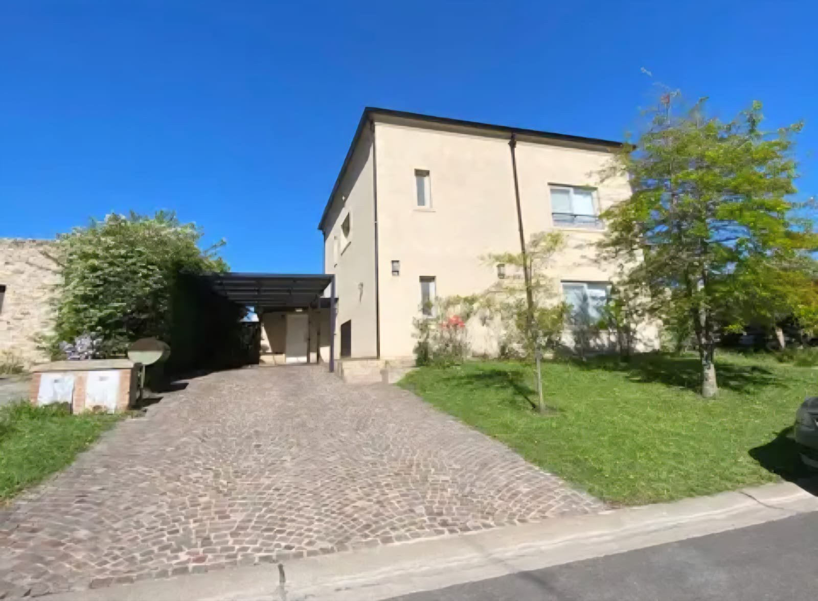 LOTE 184 Casa con nueve años de antigüedad con inmejorable ubicación. Lote a dos cuadras del ingreso al barrio y en una zona de baja circulación vehicular. Desarrollada en dos plantas con orientación Noroeste por lo que cuenta con sol todo el día en el parque. Entrada con escalera de acceso de cemento alisado y pórfido - cochera cubierta con pérgola para dos autos con piso de pórfido, y doble acceso al Jardin desde el exterior.