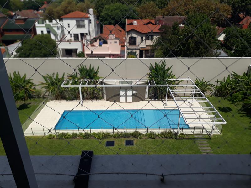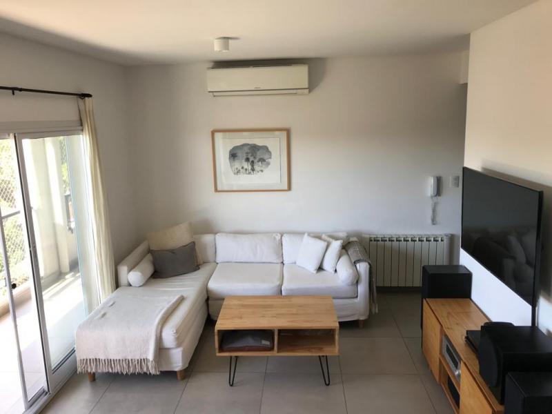 Excelente departamento de 3 ambientes con cochera, gran balcón, edificio con pileta y SUM, muy buena categoría. Dos dormitorios, uno de ellos en suite más otro baño completo, living comedor apaisado, cocina con barra americana.