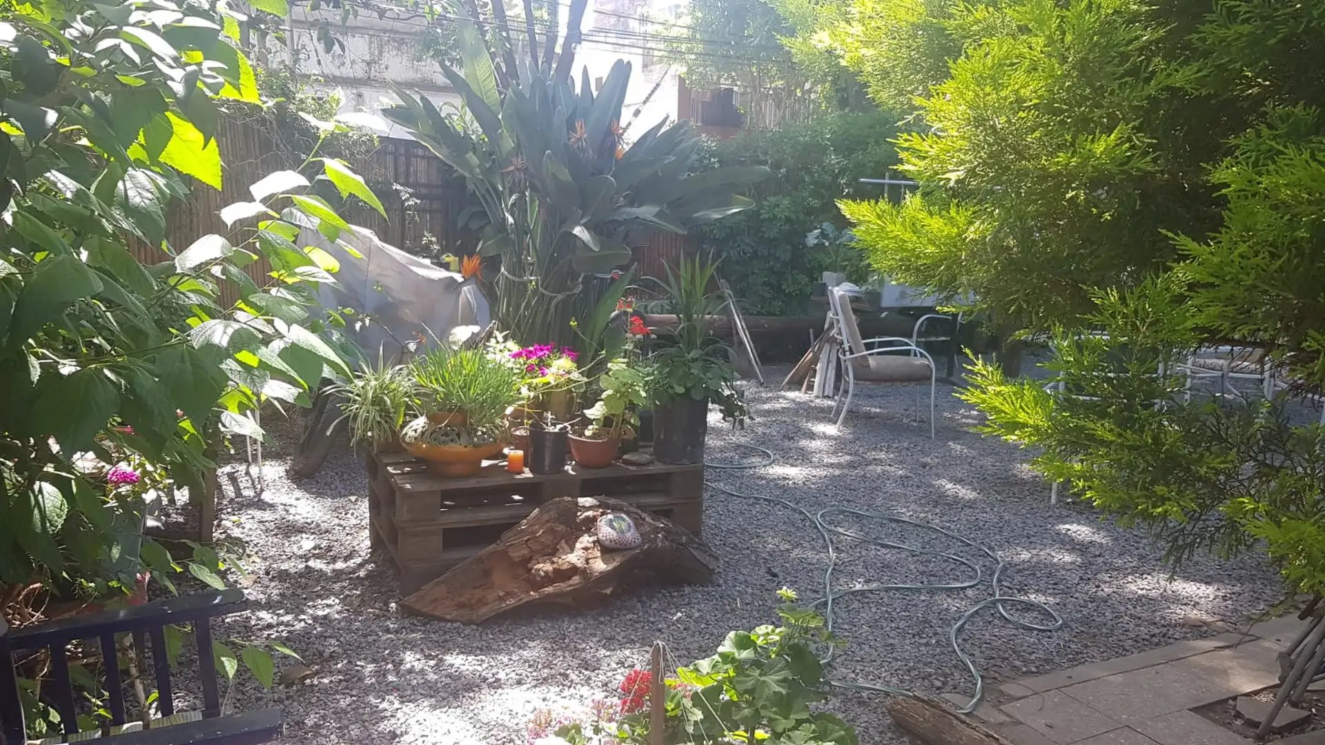 En el exterior se destaca un amplio jardín con sector de estar, ideal para reuniones y momentos al aire libre. El fondo ofrece un espacio verde arbolado, con gran potencial para seguir desarrollando o disfrutar como patio y área de recreación.